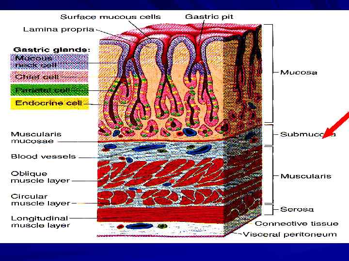 МЫШЕЧНЫЕ СЛОИ СЧИТАЯ СНАРУЖИ: 1. ПРОДОЛЬНЫЕ 2. ЦИРКУЛЯРНЫЕ (КОЛЬЦЕВЫЕ) 3. КОСЫЕ (ТОЛЬКО В ЖЕЛУДКЕ)