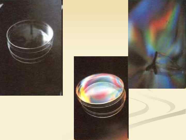 1. Интерференция n n n Интерференция наблюдается при наложении двух или нескольких световых пучков. Интенсивность света в области перекрывания пучков имеет характер чередующихся светлых и темных полос, причем в максимумах интенсивность больше, а в минимумах меньше суммы интенсивностей пучков. При использовании белого света интерференционные полосы оказываются окрашенными в различные цвета спектра.