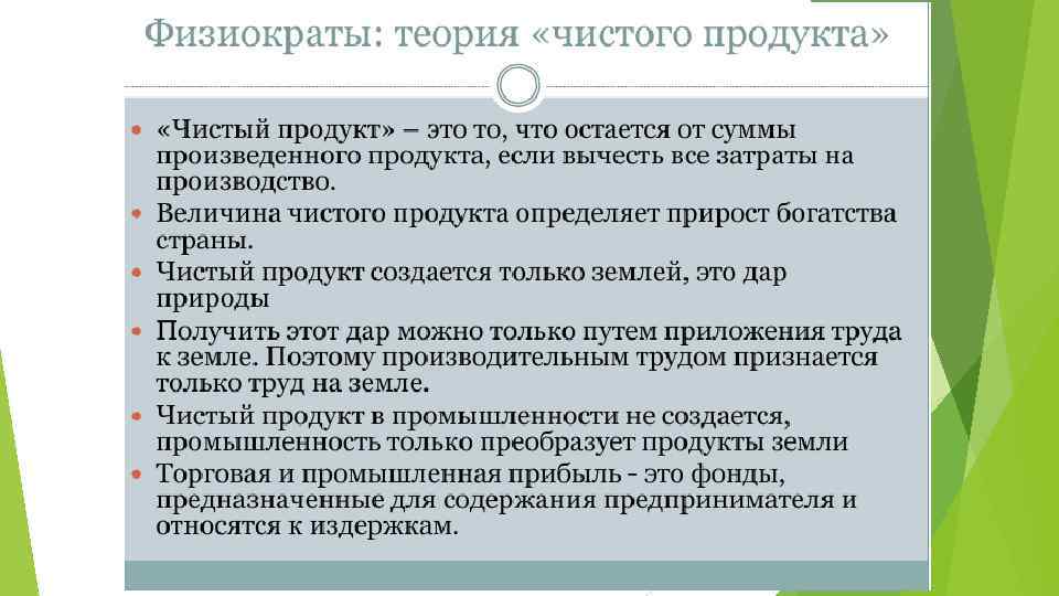 План лекции: 1. Основные черты физиократической системы 2. Физиократы: теория чистого продукта 3. Физиократы: практическая программа