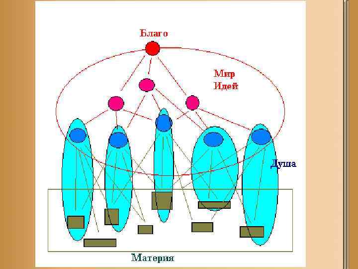 Ø § § § § § Философское учение о триаде, согласно которому все сущее состоит из трех субстанций: "единого"; "ума"; "души". "Единое ": является основой всякого бытия; не имеет никаких признаков (ни начала, ни конца, ни частей, ни целостности, ни формы, ни содержания, и т. д. ); есть ничто; выше всякого бытия, выше всякого мышления, выше всякого ощущения; первоначало всего — всех идей, всех вещей, всех явлений, всех свойств (как всего хорошего с точки зрения человека, так и всего плохого). "Ум": происходит от "единого"; разделен с "единым"; противоположен "единому"; является сущностью всех вещей; есть обобщение всего живого на Земле.