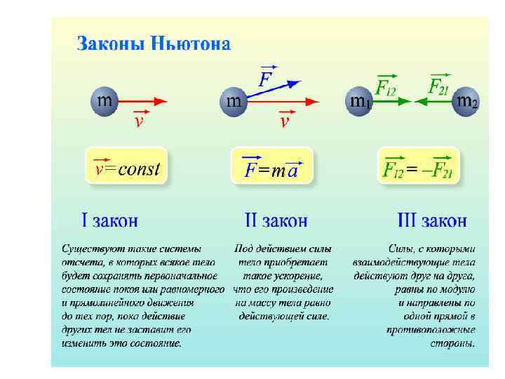 Первый закон Ньютона: Всякая материальная точка сохраняет состояние покоя или равномерного прямолинейного движения до тех пор, пока воздействие со стороны других тел не заставит её изменить это состояние. Стремление тела сохранять состояние покоя или равномерного прямолинейного движения называется инертностью. Первый закон Ньютона называют законом инерции.