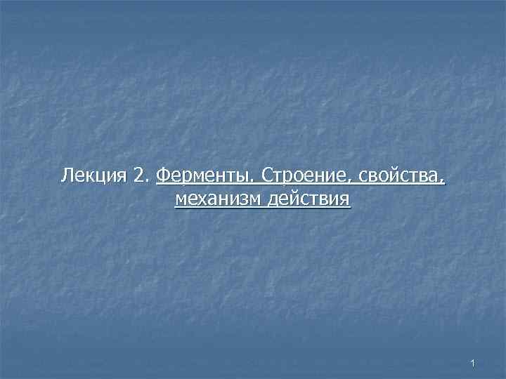 Лекция 2. Ферменты. Строение, свойства, механизм действия 1