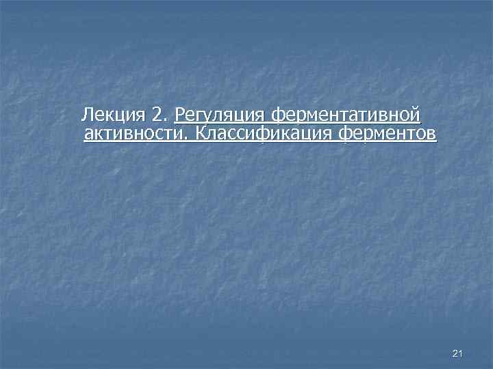 Лекция 2. Регуляция ферментативной активности. Классификация ферментов 21