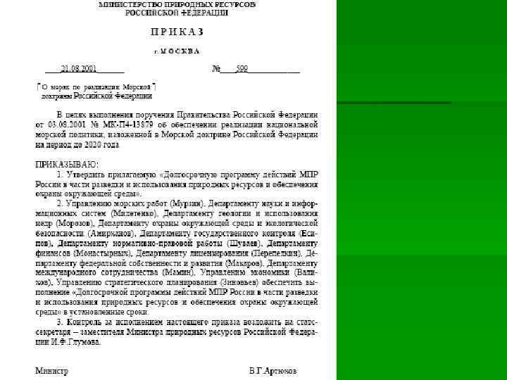 § Приказ МПР России от 27. 12. 2007 № 349 «Об утверждении Порядка информационного обмена данными государственного мониторинга водных объектов между участниками его ведения» (зарегистрирован Министерством юстиции Российской Федерации 23. 01. 2008 г. , регистрационный № 10991) § § МИНИСТЕРСТВО ПРИРОДНЫХ РЕСУРСОВ РОССИЙСКОЙ ФЕДЕРАЦИИ § ПРИКАЗ от 27 декабря 2007 г. N 349 ОБ УТВЕРЖДЕНИИ ПОРЯДКА ИНФОРМАЦИОННОГО ОБМЕНА ДАННЫМИ ГОСУДАРСТВЕННОГО МОНИТОРИНГА ВОДНЫХ ОБЪЕКТОВ МЕЖДУ УЧАСТНИКАМИ ЕГО ВЕДЕНИЯ В соответствии с пунктом 9 Положения об осуществлении государственного мониторинга водных объектов, утвержденного Постановлением Правительства Российской Федерации от 10 апреля 2007 г. N 219 "Об утверждении Положения об осуществлении государственного мониторинга водных объектов" (Собрание законодательства Российской Федерации, 2007, N 16, ст. 1921), приказываю: Утвердить прилагаемый Порядок информационного обмена данными государственного мониторинга водных объектов между участниками его ведения. Министр Ю. П. ТРУТНЕВ