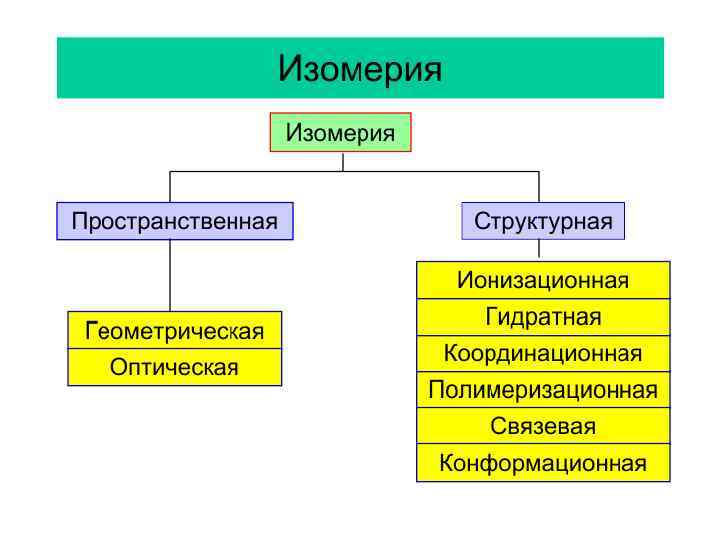 Междусферная изомерия • Ионные (ионизационные) изомеры • [Pt(NH 3)4 Cl 2]Br 2 и [Pt(NH 3)4 Br 2]Cl 2 • [Pt(NH 3)4 SO 4](OH)2 и [Pt(NH 3)4(OH)2]SO 4 p. H 7 • Координационные изомеры • [Cr(NH 3)4(NCS)2][Cr(NH 3)2(NCS)4] • [Cr(NH 3)6][Cr(NCS)6]