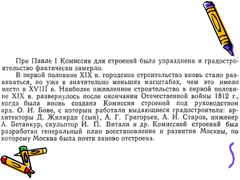 Эпоха 5. Период развития капитализма в России (вторая половина XIX в. и начало XX в. до Великой Октябрьской социалистической революции) После отмены крепостного права Россия вступила на путь капиталистического развития. Вторая половина XIX в. и начало XX в. характеризуются значительным развитием промышленного и дорожного строительства, которое повлияло на рост городского населения и характер городского строительства.