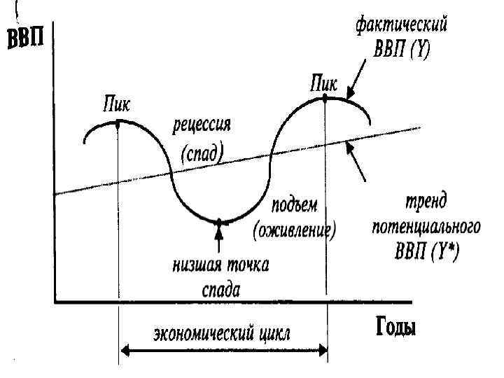Экономический цикл • - это одна из основных концепций макроэкономики, потому что флуктуации экономического развития, фазы делового цикла- подъемы и спады общей экономической активности – оказывают воздействие на всю экономику. Когда экономика устойчиво растет, тогда улучшается ситуация в большинстве отраслей национальной экономики, увеличивается благосостояние и работников этих отраслей, и собственников капитала. • Когда экономика слабеет, тогда многие отрасли испытывают проблемы с продажами и производством, люди теряют работу или переводятся на работу с неполным рабочим временем. Поскольку воздействие деловых циклов на экономику настолько велико и широко, а спады деловой активности могут повлечь за собой весьма тяжелые последствия, экономисты пытаются определить причины их возникновения, а также выяснить, что можно предпринять для противодействия этим негативным тенденциям.