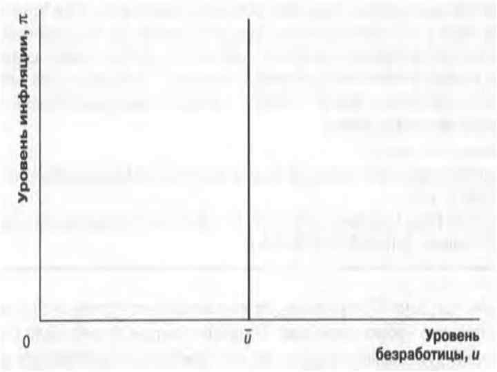 • Хотя экономисты-классики и кейнсианцы расходятся в отношении того, может ли взаимосвязь, выражаемая кривой Филлипса, использоваться для временного снижения безработицы , они согласны в том, что политики не могут постоянно удерживать безработицу ниже естественного уровня за счет поддержания высокого уровня инфляции. Ожидания по поводу инфляции в конечном итоге будут скорректированы так, что ожидаемая и фактическая инфляция сравняются, или будет выполняться равенство • = e • Долгосрочная зависимость между безработицей и инфляцией отражает долгосрочная кривая Филлипса (longrun Phillips curve). В долгосрочном периоде безработица равна своему естественному значению независимо от уровня инфляции, долгосрочная кривая Филлипса представляет собой вертикальную линию при u = u*. • В силу этого кривая Филипса не может рассматриваться в долгосрочном плане как эффективный инструмент регулирования безработицы и инфляции. Борьба с безработицей должна опираться на систему мер снижающих естественный уровень безработицы, а борьба с
