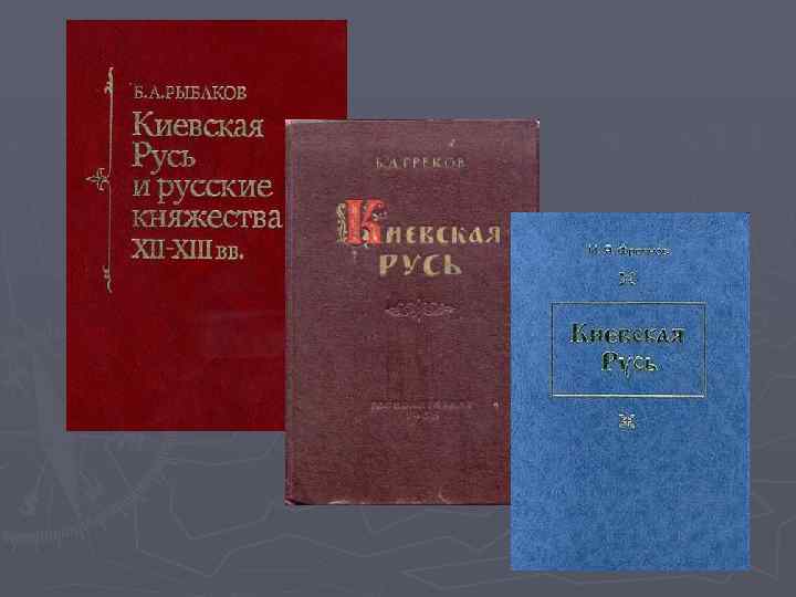 Форма государства Киевская Русь ► Раннефеодальная монархия (Рыбаков, Греков) ► Города- государства республиканского типа (Фроянов) ► Единое государство Киевская Русь (Рыбаков, Греков) ► Конфедерация княжеств (Фроянов)