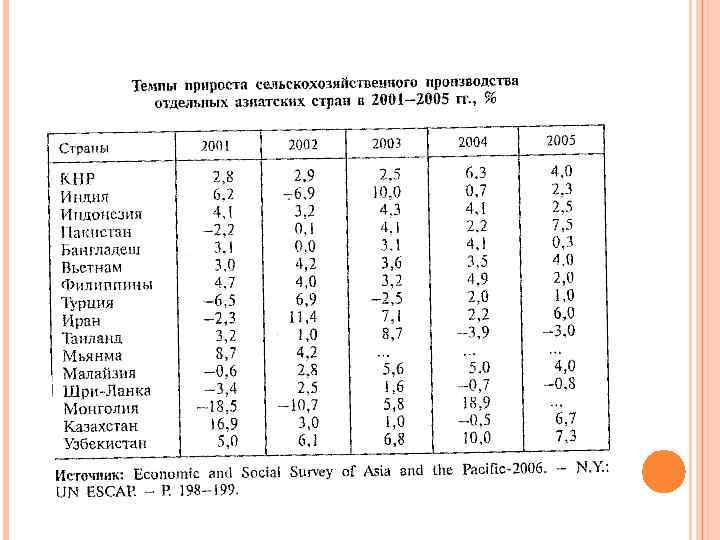 СЕЛЬСКОЕ ХОЗЯЙСТВО СТРАНВОСТОЧНОЙ АЗИИ - Резкие климатические различия Обрабатываемая площадь – 17% территории Площадь обрабатываемых земель на душу населения – 0, 15 га (в России 0, 9, в США – 0, 7) Наибольшая доля непродуктивных земель 70% населения сосредоточено во влажных районах Архаичная система аграрных отношений Сочетание крупного землевладения (помещичьего типа) с мелким (крестьянским) землепользованием Низкие возможности для модернизации Необходимость проведения реформ: ограничение/устранение докапиталистической системы аграрных отношений освобождение от форм внеэкономического принуждения социальное сдерживание в деревне