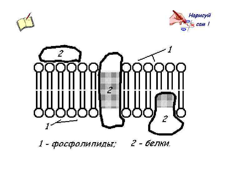 Биологическая мембрана • • • Структура, имеющая общий план строения – бислой фосфолипидов и включённые в него белки Структура, отделяющая клетку от внешней среды и формирующая внутриклеточные органеллы (мембранные). Структура обеспечивающая взаимодействие клетки и органелл с окружающей их средой.