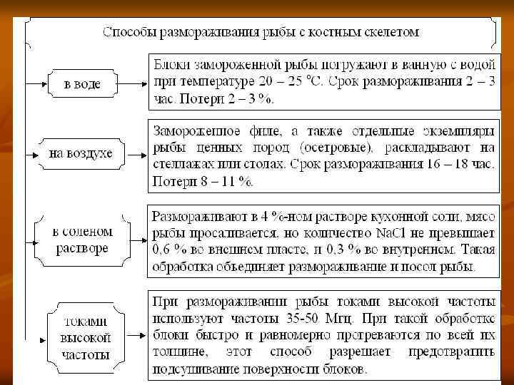 На воздухе Белки не полностью восстанавливаются из-за потери к гидратации; потери массы, водораств. в-в В воде Основные изменения в мясе рыбы при размораживании В воде с Na. Cl Белки не полностью восстанавливаются, потери при гидратации (0, 8%)-с цель ю торможения диффузии Потери Увеличение массы рыбы на 5 -10% диффузия гидротация Водорастворим ых белков (0, 25%) Минеральных веществ 0, 1%) Вода