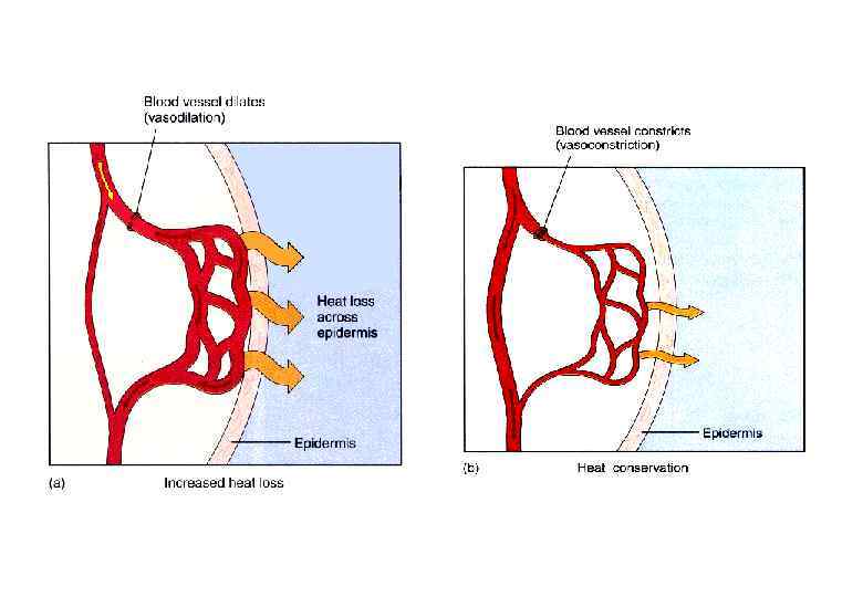 Сравнение: Ведущая форма терморегуляции У пойкилотермных • поведенческая терморегуляция (термопреферендум) У гомойотермных • физиологическая терморегуляция (автономная, вегетативная)