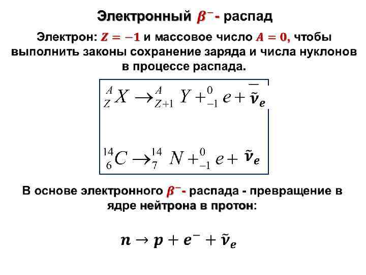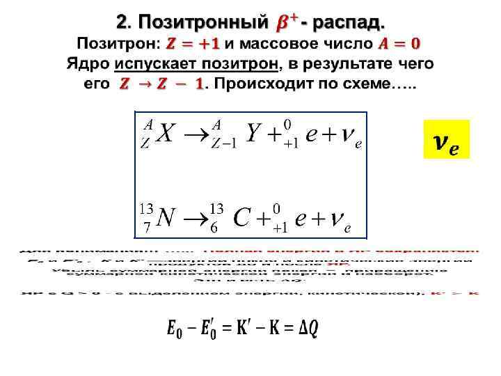 К-захват При захвате ядром электрона (с электронной К-оболочки) происходит превращение одного из протонов ядра в протонов нейтрон, что сопровождается испусканием нейтрино: нейтрон нейтрино