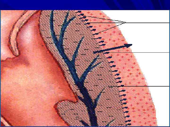 ЭЛ. ТОКИ В ГРУДНОЙ КЛЕТКЕ ВОЗБУЖДЕНИЕ (–) РАСПРОСТРАНЯЕТСЯ по ПЕРЕГОРОДКЕ СТЕНКИ ЖЕЛУДОЧКОВ ЕЩЕ в ПОКОЕ (+) ТОК ИДЕТ от ОСНОВАНИЯ (–) к ВЕРХУШКЕ (+)
