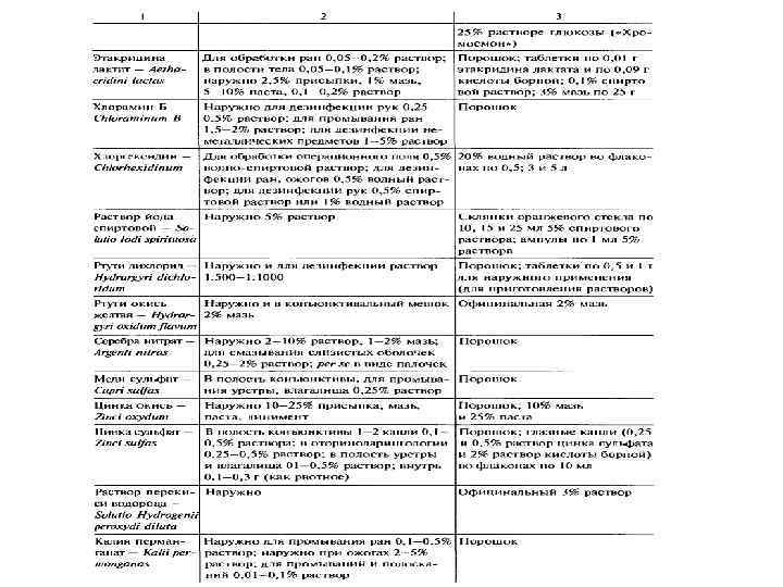 Антиинфекционные средства Дезинфицирующие – средства, применяющиеся для уничтожения возбудителей заб-й во внешней среде: помещения, посуда, выделения в бактерцид. % Антисептики – средства для уничтожения возбудителей заболеваний на операционном поле, в ране, на руках медперсонала, медиц. инструментах, перевяз. материалах. Химиотерапевтические средства, применяющиеся для избирательного уничтожения возбудит-й заб-й в орг-ме человека.