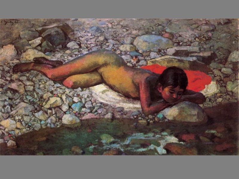 К. С. Петров-Водкин член объединений «Мир искусства» и «Четыре искусства» французский символизм живопись Древней Руси и итальянского Раннего Возрождения - принцип «сферической перспективы», который позволяет ему, изображая натуру в ракурсах сверху и сбоку, передавать ощущение «земли как планеты»