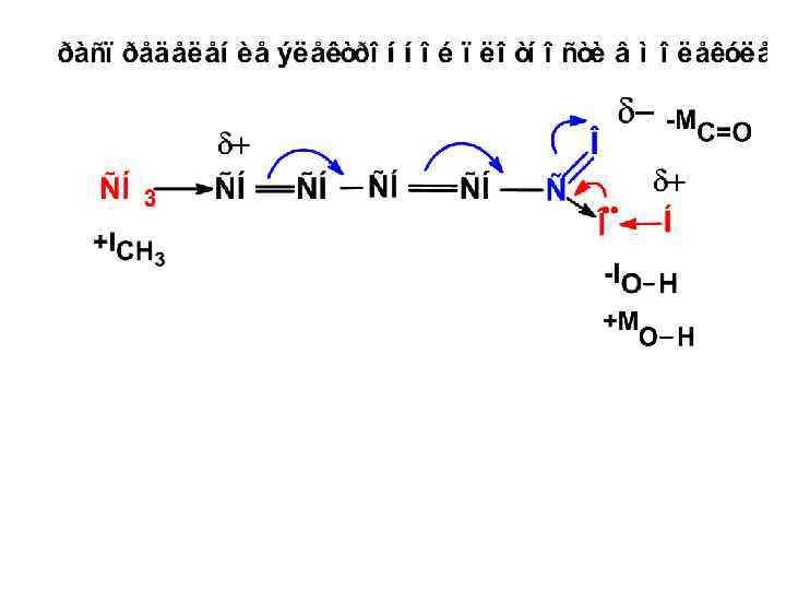 2. По типу реагента – радикальные (R); СН 2=СН–СН 3 + НО· → СН 2=СН–СН 2· + Н 2 О – электрофильные (E); С 6 Н 6 + NO 2+ → C 6 H 5 NO 2 + H+ – нуклеофильные (N); – окислительные [O] – восстановительные [H] 33