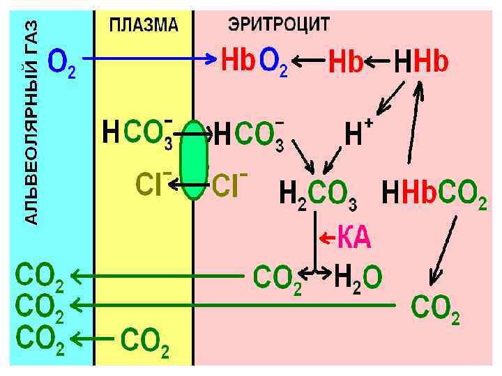 Диффузионные градиенты • РСО 2 в притекающей к тканям крови 40 мм рт. ст. , • в клетках 60 мм рт. ст. , что обеспечивает поступление СО 2 из клеток тканей в кровь.
