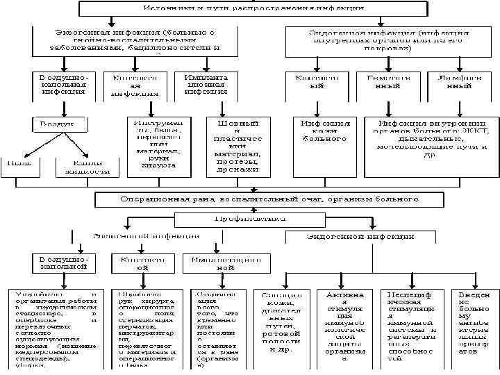 Профилактика воздушной и капельной инфекции (это уменьшение загрезнения воздуха микробами и уничтожение уже имеющихся в нем бактерий): • 1. Устройство хирургических отделений, операционного блока и перевязочных: - планирование их - оснащение • 2. Организация работы всего хирургического отделения, включая и операционное: - уборка - обеззараживание - освещение - температурный режим - ношение персоналом спецодежды