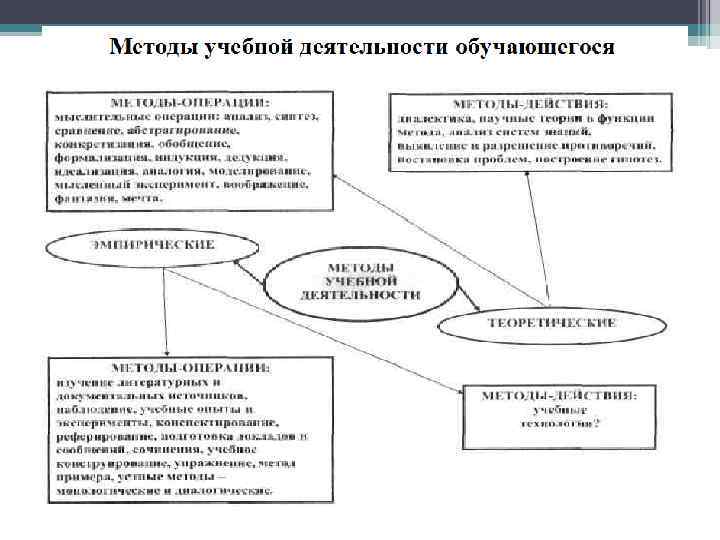 Методы образовательной деятельности • Методы воспитательной деятельности обучающегося • Методы учебной деятельности обучающегося • Методы деятельности обучающегося по развитию психических процессов