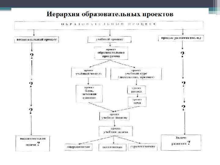 Учебные задачи как многоуровневые образовательные проекты • Первый уровень (операционный) – решение традиционных учебных задач как минипроектов образовательной деятельности, соответствующих ситуативной активности; • Второй уровень (тактический) – решение учебных задач как более крупных учебных проектов, соответствующих надситуативной активности (подготовка докладов, исследовательские практикумы, деловые игры, междисциплинарные работы и т. д. ); • Третий уровень (стратегический) – решение задач творческого уровня как крупных учебных проектов, соответствующих творческой активности личности (реализуемые в практическом обучении и учебном проектировании; имеющие общественно-полезную значимость; высокий уровень трудности; сформулированы в самом общем виде; предусматривают возможность коллективной производственной деятельности) • Учебные задачи второго и третьего уровней должны быть включены в учебные программы как обязательные компоненты учебного процесса.
