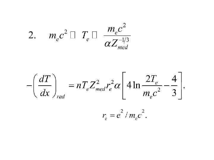 Потеря энергии в одном акте торможения hn Спектр излучения «белый» . При Те>Tcrit электрон в среднем испускает oдин тормозной квант с энергией порядка Те на пути длиной в одну радиационную длину.