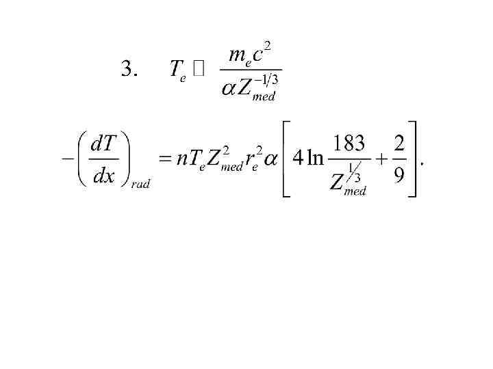 При Рассматривая только радиационное торможение, получаем величину средней энергии электрона после прохождения слоя вещества толщиной х: X 0 - радиационная длина.