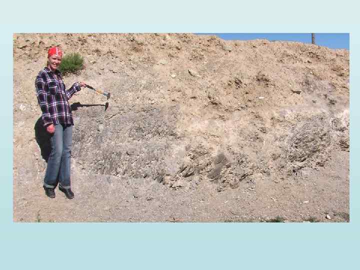 Чаганский разрез Чуйская котловина Плоскости сместителей гляциошарьяжей, (подчеркнуты «листоватостью» ) в толще основной морены, насыщенной озерными алевритами