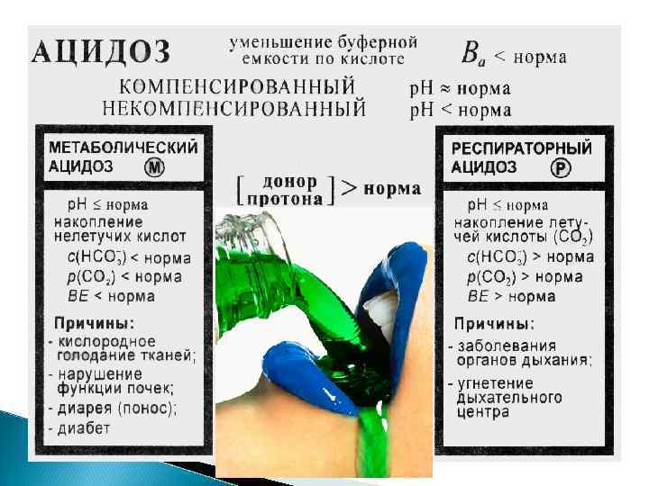 Компенсированный и некомпенсированный ацидоз и алкалоз Лечение 4% Na. HCO или 11% лактат натрия 3 3. 66% трисамин Н NС(СН ОН) 2 2 Лечение 5% раствор аскорбиновой кислоты. р. Н≈7. 40 3 норма комп. ацидоз некомпенсированный ацидоз комп. алкалоз некомпенсированный алкалоз † †