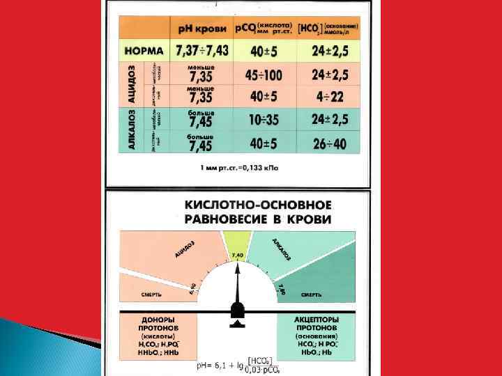 [НСО 3–] Щелочной резерв крови Число мл СО 2, содержащееся в 100 мл крови (главным образом в виде гидрокарбонатов НСО 3 -) Норма: 50 -70 % (по объему) или 25 -30 ммоль/л