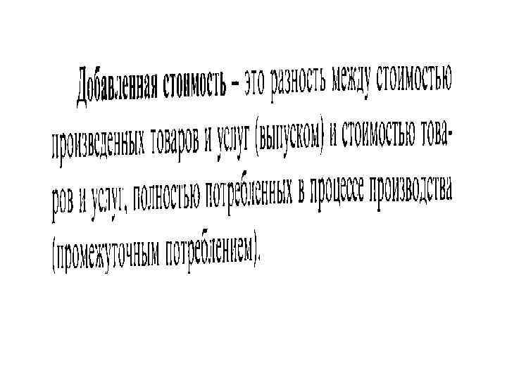 ВАЛОВОЙ ВНУТРЕННИЙ ПРОДУКТ (ВВП) выражает совокупную стоимость конечных товаров и услуг, созданных внутри страны вне зависимости от национальной принадлежности факторов производства, используемых в производстве.