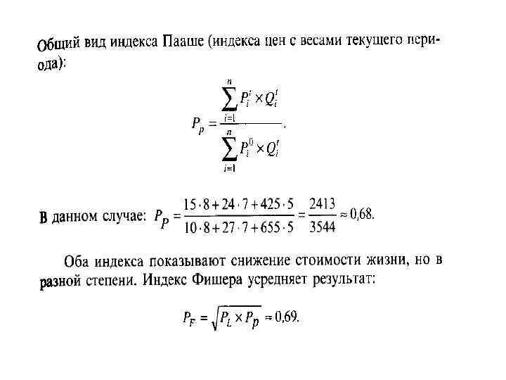 Индекс Фишера представляет собой среднюю геометрическую из произведений двух агрегатных индексов цен Ласпейреса и Пааше