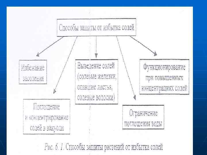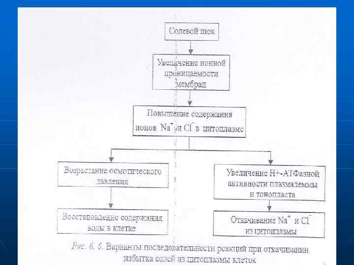 n n В условиях солевого стресса большое значение приобретают особенлостк ионного транспорта. На уровне корня создаются мощные ионтранспортирующие барьеры. У соленепроницаемых галофитов такие барьеры хорошо выражены. поэтому галофиты этого типа испытывают только водный стресс, в то время как соленакапливающие — только солевой. Истинные галофиты, накапливающие соли, располагают молекулярными биологическими механизмами солеустойчивости и могут особенно молодые растения не иметь никаких ион-транспортирующих барьеров. n n n Галофиты с другими типами солевого обмена обладают разными по мощности ионтралспортирующими барьерами и могут испытывать и водный и солевой стресс. У гликофитов ион-транспортирующих барьеров нет. В их солеустойчивости решающую роль могут играть процессы водно-солевого обмена (рис. 6. 5).