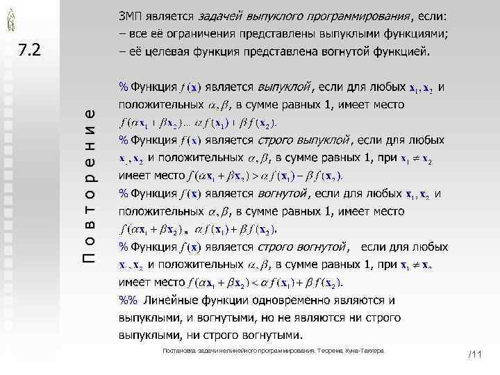 П о в т о р е н и е 7. 2 Постановка задачи нелинейного программирования. Теорема Куна-Таккера /11
