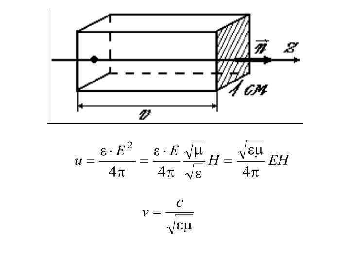 Тогда количество энергии, которое протекает через основание параллелепипеда (цилиндра) в 1 сек, равно энергии содержащейся в части параллелепипеда (цилиндра) длиной