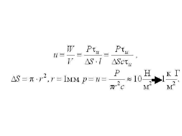 Примеры • 3. Оценим давление света от лазерного импульса длительностью и мощностью Р=1 МВт