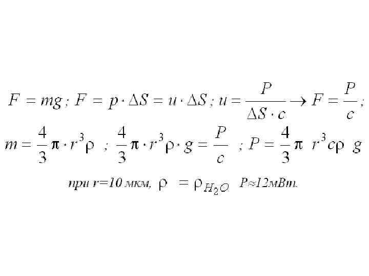 Примеры • 4. Левитация это управление движением малой частицы с помощью лазерного пучка вопреки силе тяжести. Расчет сделан для эритроцита.