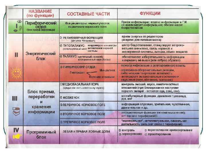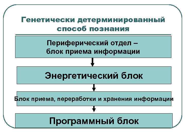 Генетически детерминированный способ познания Периферический отдел – блок приема информации Энергетический блок Блок приема, переработки и хранения информации Программный блок