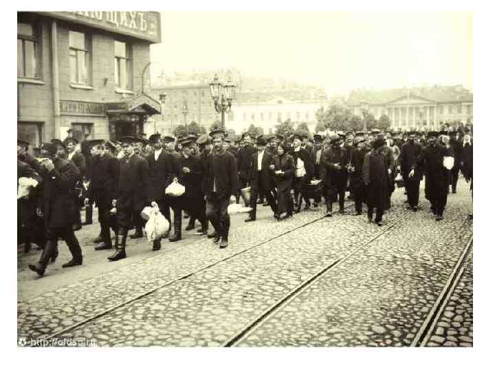 Рабочее и крестьянское движение в годы войны • • Объявление войны вызвало прилив патриотических настроений, поэтому в первые годы не редкостью были рабочие манифестации в её поддержку. Вместе с тем в Царицыне рабочие бастовали в августе и в ноябре 1914 г. , требуя повышения заработной платы. С весны 1915 г. стачечное движение расширилось. В забастовках принимали участие рабочие Саратова, Вольска, Царицына. Если в 1914 г. на всех предприятиях Саратовской губернии бастовало 400 человек, то в 1915 г. — 6, 5 тыс. , а в 1916 г. — 10 тыс. человек. Как правило, рабочие выдвигали экономические требования. В годы войны ухудшилось положение крестьянства. Вследствие мобилизации в армию к 1917 г. 30, 7% крестьянских хозяйств осталось без работников. Реквизиция лошадей приносила крестьянам убыток. Правительственные заготовки крупного рогатого скота так-же разоряли крестьянские семьи. Заготовки удовлетворяли спрос города и армии лишь на одну треть. Сократились посевные площади, которые некому и нечем стало обрабатывать. Кроме того, росла крестьянская задолженность по налогам, денежным и натуральным. В 1916 г. 76% крестьянских хозяйств имели долги в среднем по 74 рубля на хозяйство. В губернии 83, 6% хозяйств числились должниками по сдаче хлеба. В среднем на двор приходилось по 22, 3 пуда долга. Правительство стало усиливать меры по его взысканию. Из назначенного в Саратовской губернии в 1915 г. к взысканию хлеба было получено менее 25%, в 1916 г. — и того меньше. Все это вызывало недовольство крестьянства, выливавшееся в выступления против помещиков и царских властей. Ежедневный расход на войну превыша 50 млн рублей, что за все ее годы составило 26 млрд рублей.