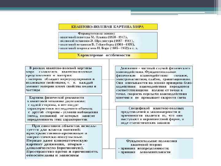 Сегодня ученые стремятся построить единую физическую картину мира, в фундаменте которой лежат: — синтез релятивистских и квантовых идей; — идеи возможности построения единой теории всех фундаментальных взаимодействий.