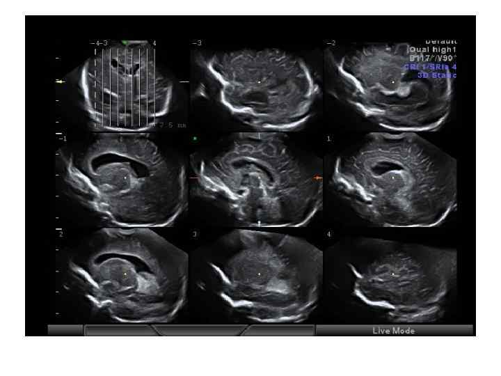 Ультразвуковая томография • • • технология, позволяющая просматривать одновременно несколько двухмерных срезов, полученных при трехмерном сканировании (аналог технологий КТ, МРТ). Некоторые специалисты давно называют эхографию ультразвуковой томографией. Теперь УЗИ с применением технологии ультразвуковой томографи и более точно соответствует названию - ультразвуковая томография. Принцип этой технологии основан на сборе объемной информации полученной при трехмерном УЗИ и дальнейшего разложения ее на срезы с заданным шагом в трех взаимных плоскостях (аксиальная, сагиттальная и коронарная проекции). Программное обеспечение осуществляет постобработку и представляет изображения в градациях серой школы с качеством, сравнимым с МРТ. Главное отличие от КТ - отсутствие рентгеновских лучей, которые являются противопоказанием при обследовании беременных и детей.