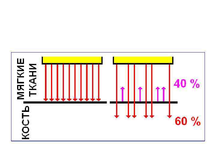 Коэффициент отражения • зависит от разности импеданса соприкасающихся сред, т. е. от степени акустической неоднородности граничащих тканей. • чем выше различие в импедансе, тем больше волн отражается.