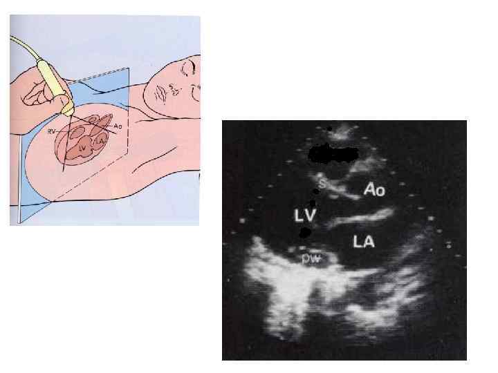 Двухмерная эхокардиография • изображение сердца по длинной оси в реальном времени.