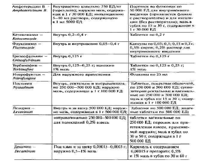 Амфотерицин В Тяж-е формы системных микозов: • • инвазивный кандидоз, аспергиллез, криптококкоз, споротрихоз, мукормикоз, трихоспороз, фузариоз, феогифомикоз, эндемичные микозы (бластомикоз, кокцидиоидоз, паракокцидиоидоз, гистоплазмоз, пенициллиоз). Кандидоз кожи и слизистых оболочек (местно). Лейшманиоз. Первичный амебный менингоэнцефалит, вызванный N. fowleri.