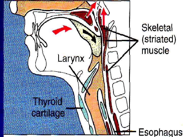 4. ПИЩЕВОД – ВВЕРХ, ВХОД РАСШИРЯЕТСЯ 5. ВЕРХНИЙ ПИЩЕВОДНЫЙ СФИНКТЕР РАСКРЫВАЕТСЯ 6. ГЛОТКА СОКРАЩАЕТСЯ, ПРОТАЛКИВАЯ ПИЩУ t=2 c