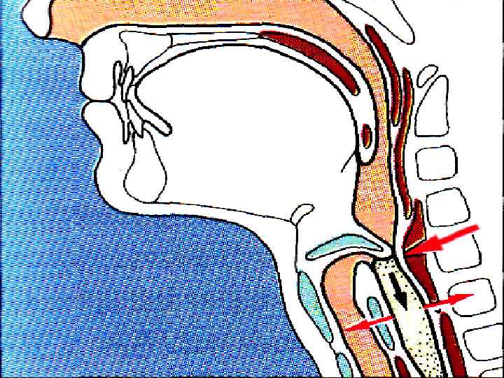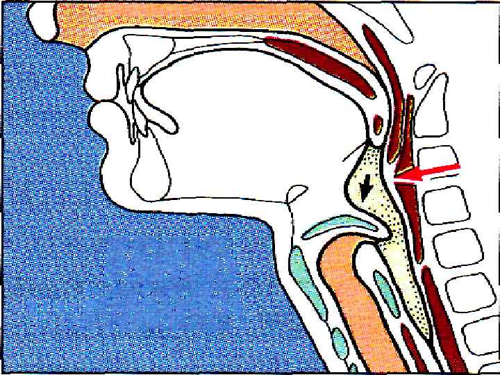 1. МЯГКОЕ НЕБО ЗАКРЫВАЕТ ХОАНЫ 2. НЕБНО-ГЛОТОЧНЫЕ СКЛАДКИ – САГИТТАЛЬНУЮ ЩЕЛЬ 3. ГОЛОСОВАЯ ЩЕЛЬ СМЫКАЕТСЯ, ГОРТАНЬ ПОДТЯГИВАЕТСЯ ВВЕРХ → НАДГОРТАННИК – КЗАДИ