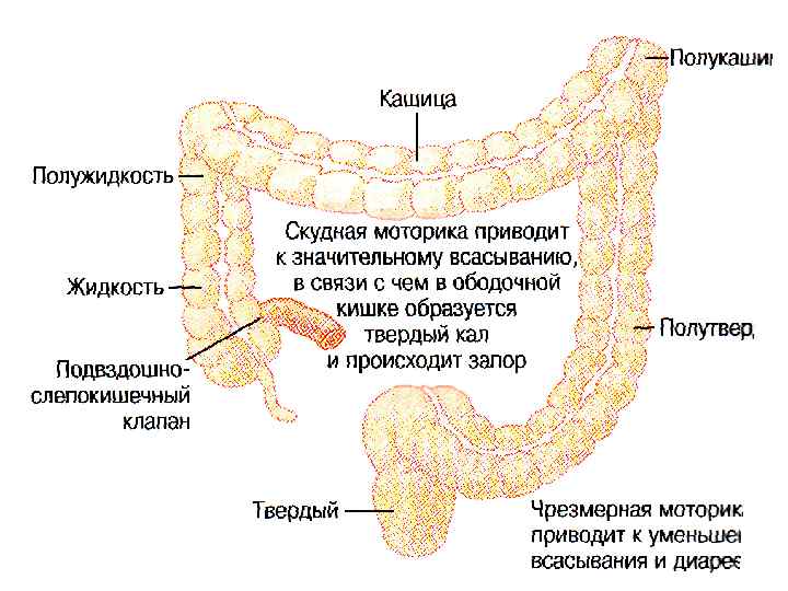 ФУНКЦИИ ВСАСЫВАНИЕ ВОДЫ И ЭЛЕКТРОЛИТОВ ХРАНЕНИЕ КАЛА t = 8 – 15 ч