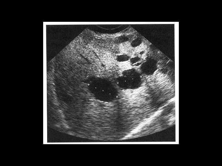 АКТУАЛЬНЫЕ ВОПРОСЫ РЕНТГЕНОЛОГИИ ЛУЧЕВАЯ ДИАГНОСТИКА ОЧАГОВЫХ ПОРАЖЕНИЙ ПЕЧЕНИ КИСТЫ ПЕЧЕНИ Ультразвуковая семиотика: - эхонегативное образование - четкая граница - тонкие стенки - периферическое усиление эхосигнала