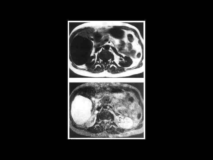 АКТУАЛЬНЫЕ ВОПРОСЫ РЕНТГЕНОЛОГИИ ЛУЧЕВАЯ ДИАГНОСТИКА ОЧАГОВЫХ ПОРАЖЕНИЙ ПЕЧЕНИ Выявляемость опухолей печени с помощью МРТ 1. Гемангиомы 2. Карциномы около 3 см свыше 2 см меньше 2 см 95% 90 -97% 30 -35%